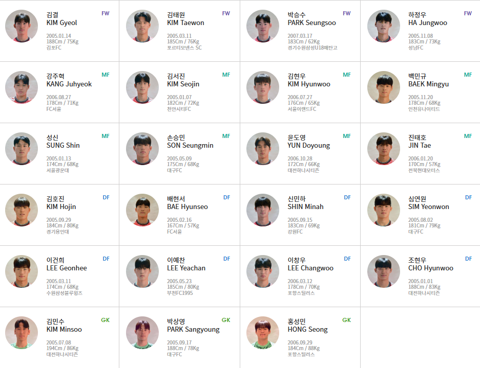 *2025년 AFC U20 아시안컵 대한민국 선수 명단*